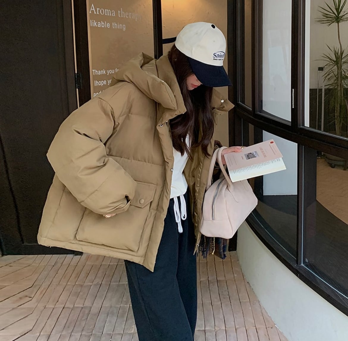 カジュアル系 厚手 綿入れコート