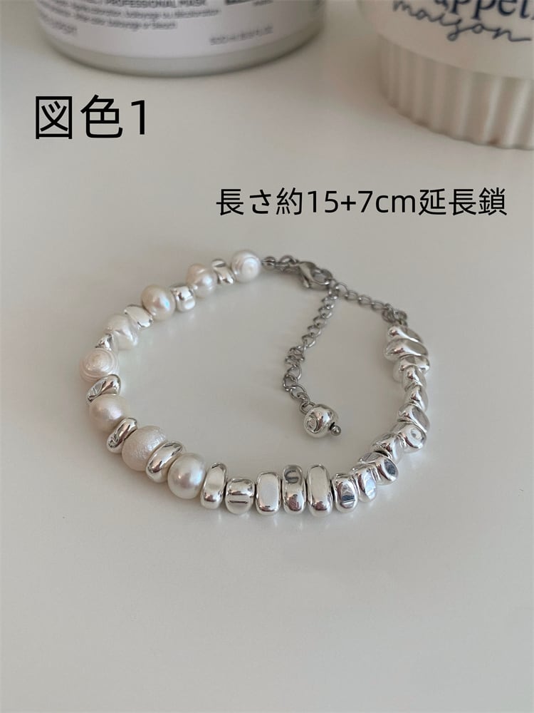 真珠 銀くず鎖 ブレスレット