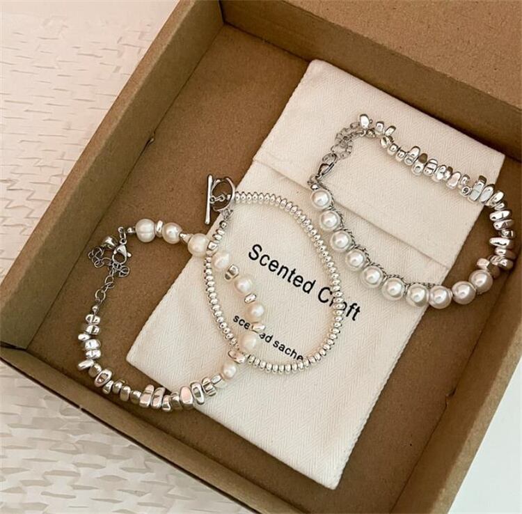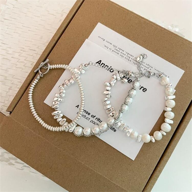 おしゃれな装いに華やかさをプラスする真珠 銀くず鎖 ブレスレットが登場。上品な光沢を放つ真珠と、銀くず鎖のユニークなデザインが相まった存在感のあるアクセサリー。個々に選りすぐられた上質な真珠を使用しており、その美しさが一層際立ち手首に程よくフィットするサイズ感で、どんなスタイルにもマッチ。