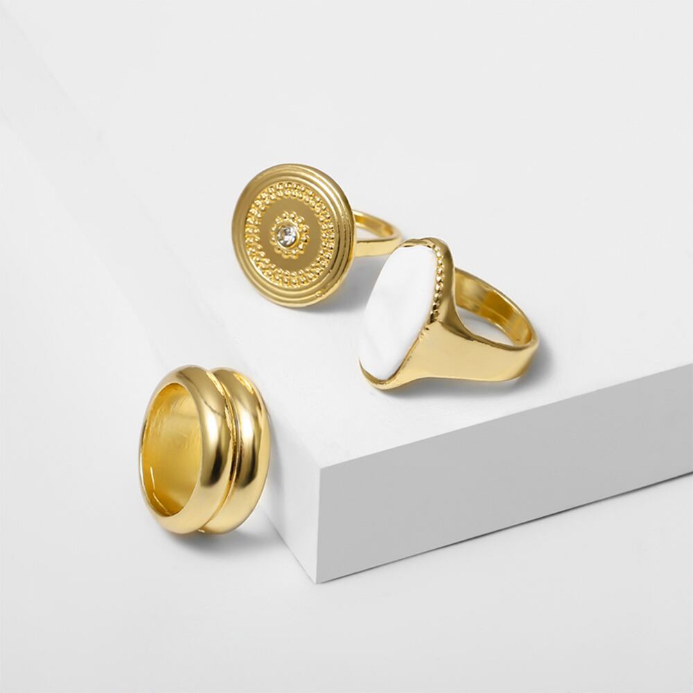 程よくボリューミーな指輪、これ一つで手元のお洒落が簡単に完成し、こなれ感を演出。