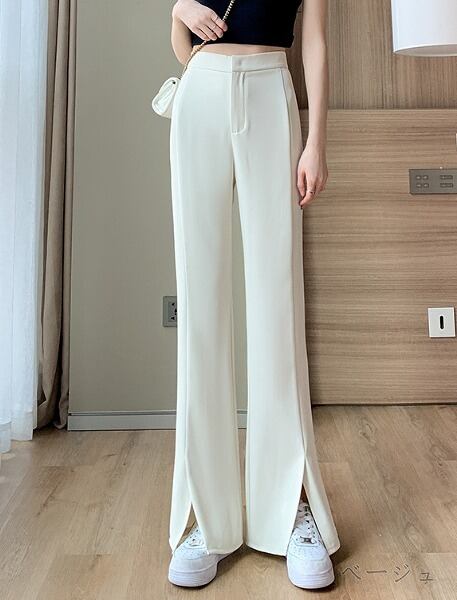 カジュアルでもきれいめでも使える便利なスラックス。スリットデザインが脚を細く見せてくれるだけでなく、足さばきも良く快適。ウエスト部分はゴム仕様で穿き心地も抜群、仕事やデートなど、様々なシーンで活躍すること間違いなし。