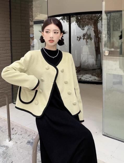 丸ボタンバイカラーコート/ワンピース
