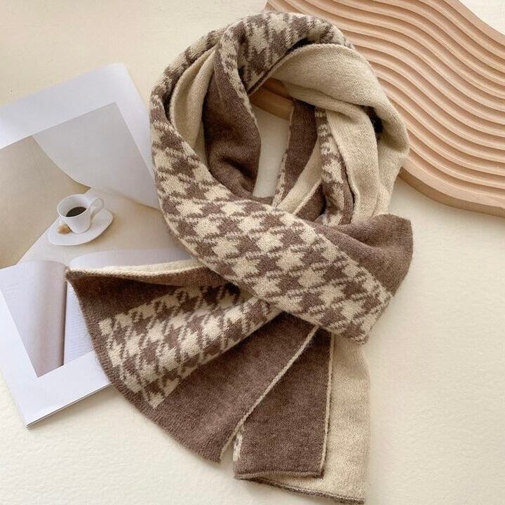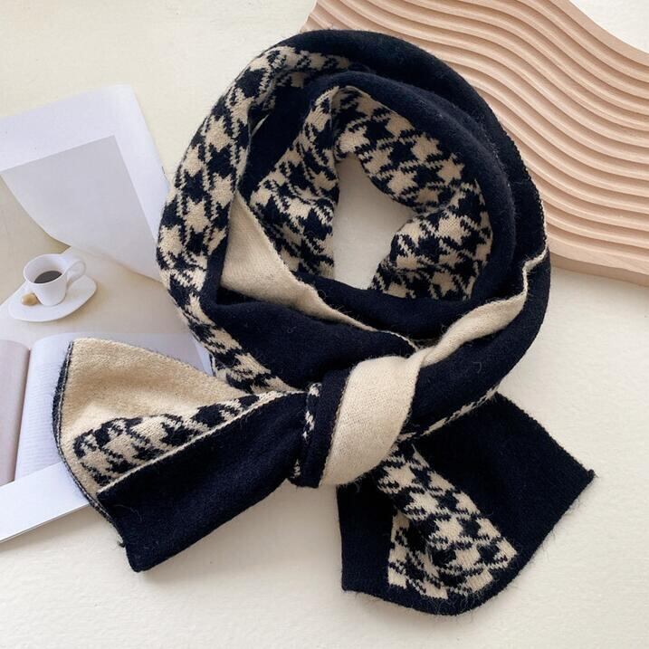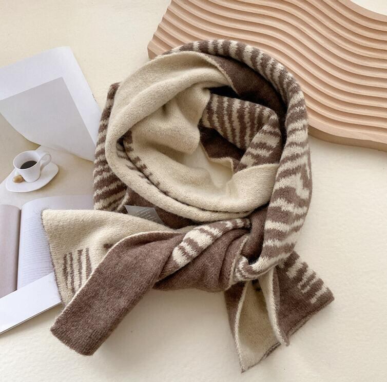 幾何学柄が特徴のニットショートマフラー。トレンド感のあるデザインでさらっと首に巻くだけで、コーディネートのポイントに。軽量で暖かい素材を使用しているため、寒い季節にも活躍。色々なスタイルに合わせやすいカラーバリエーションも魅力。
