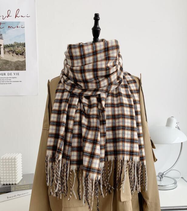 チェック柄 ニットマフラー