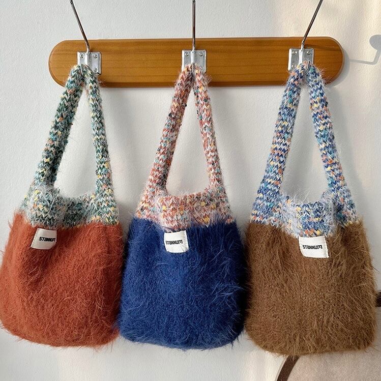シャギー カラフル ニットバッグ