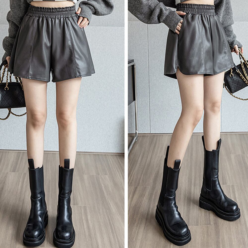 光沢のあるPU素材が爽やかなムードを漂わせて、ワイドなシルエットがお洒落なショートパンツ