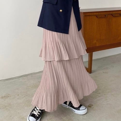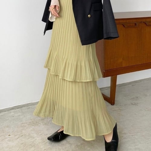 2段フリル ロングスカート